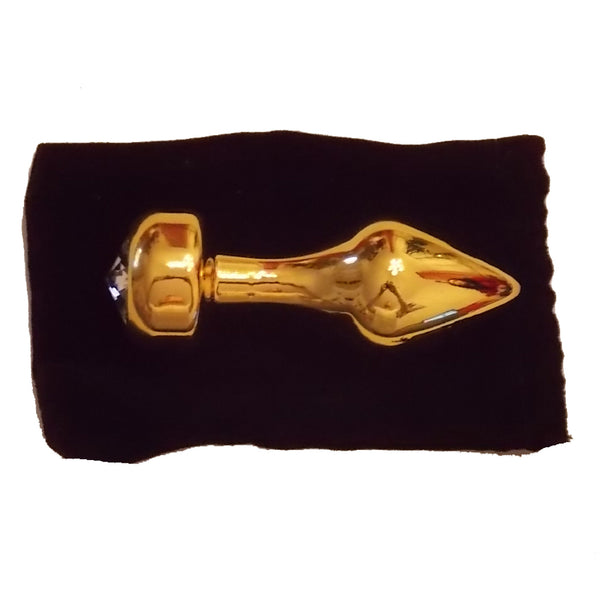 Anal Plug Goldfarben Aluminium mit Schmuckstein blau