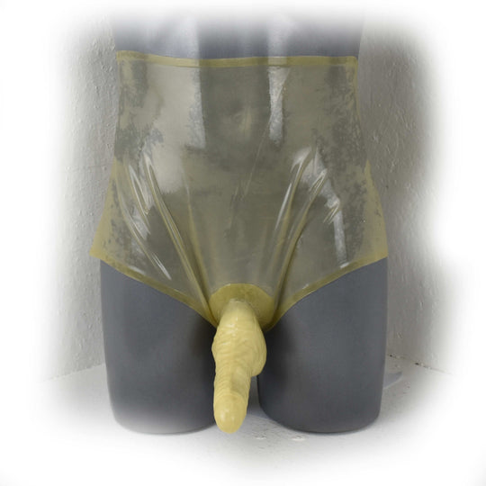 Big Pants mit Kondom und extra hohem Bund. Latex handgemacht, geklebt Material: 100 % Latex Wahlweise auch in diesen Farben lieferbar (Sonderanfertigung). Voll-farben Schwarz Blau Fleisch Orange Violett Rot Weiß Gelb Transparent Schwarz Blau...Normaler Preis €65,95 -