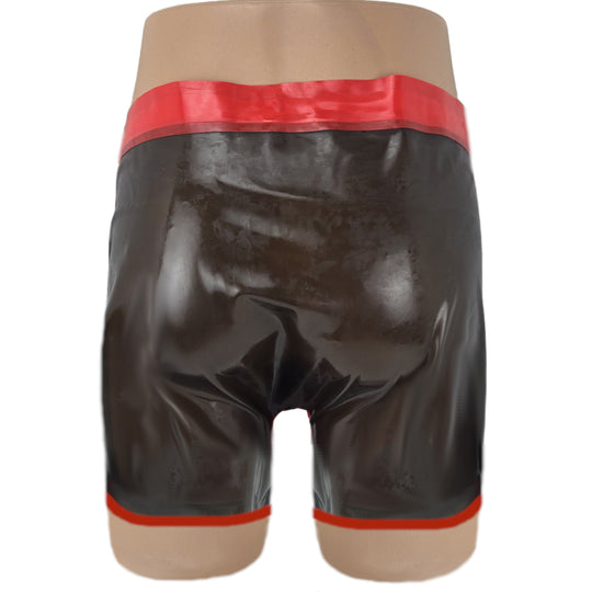 Latex Shorts Reißverschluss Transparent mit rotem Rand