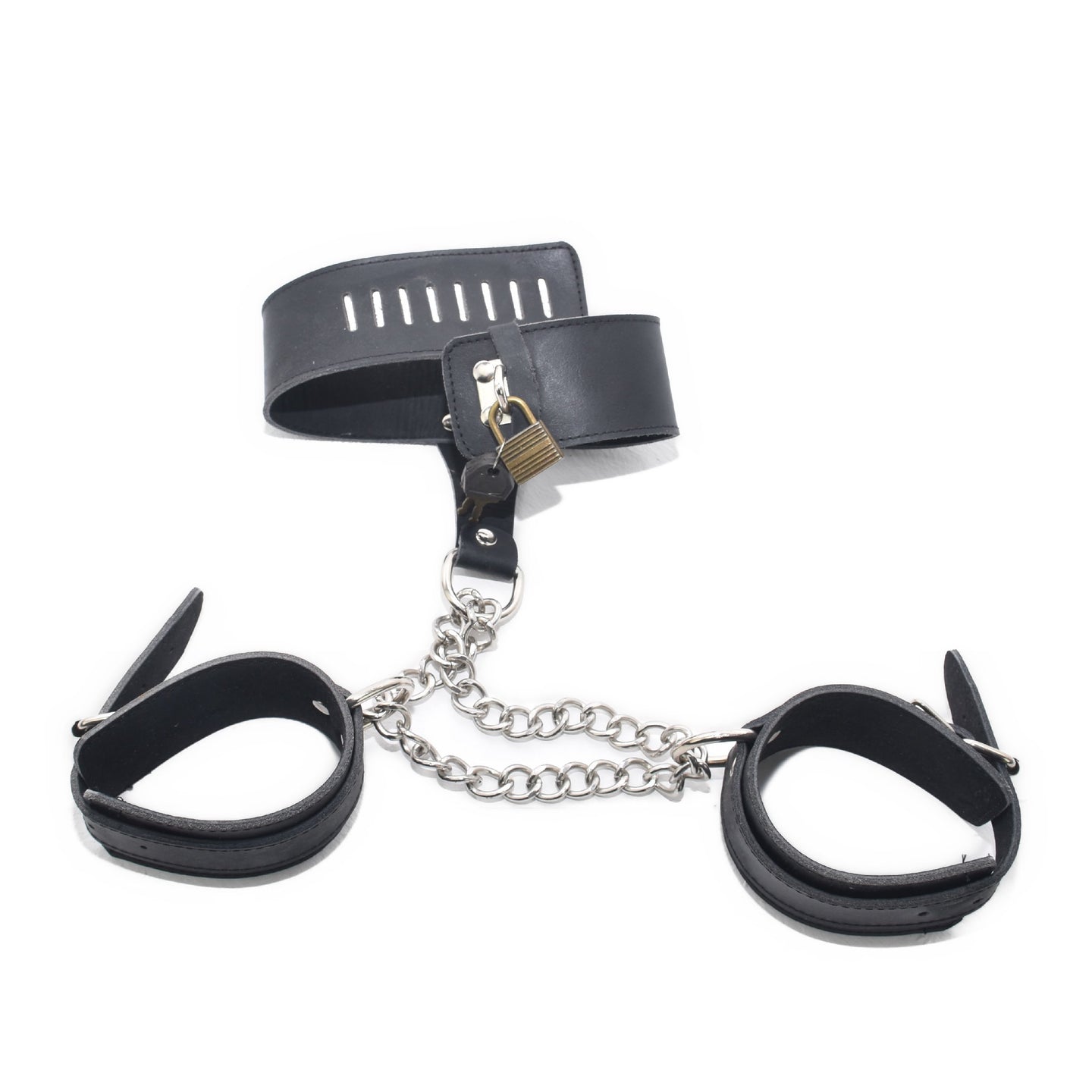 Größer verstellbarer Bondage Hals und Armfessel mit Schloss