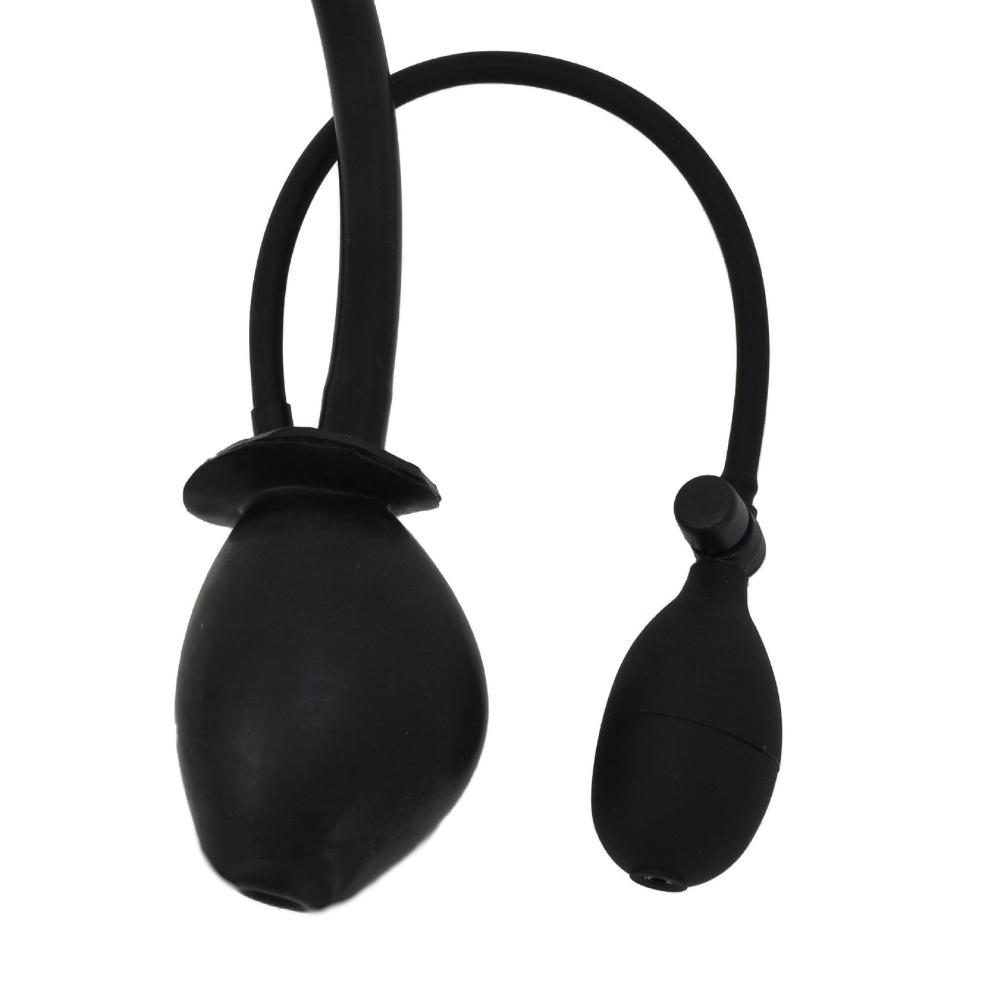 Aufblasbarer Latexstöpsel mit Schlauch und Pumpe.
