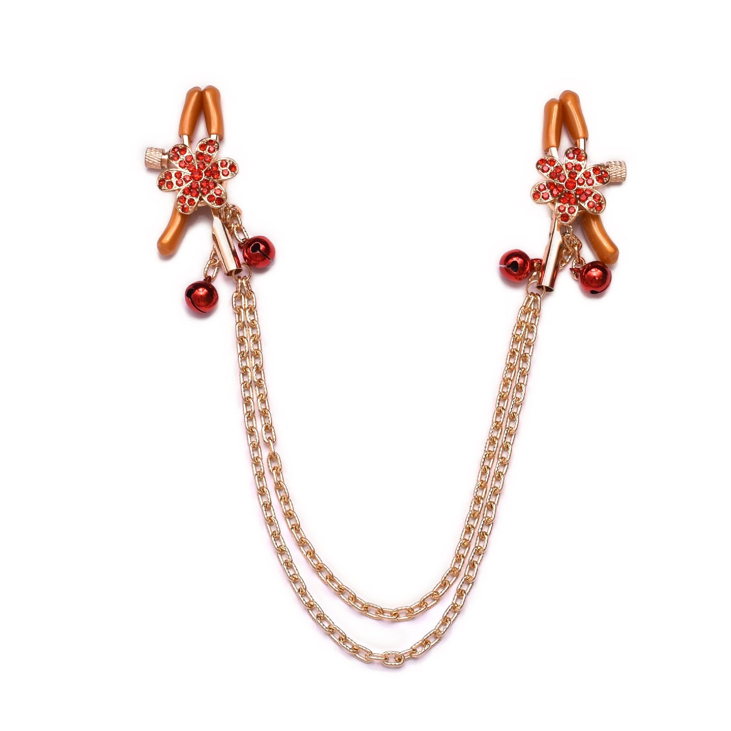 Nippelklemmen/Bruststimulatoren für Frauen und Männer, Brustwarzenklemmen mit Blümchen, Glöckchen und Kette in einem Geschenkbox,