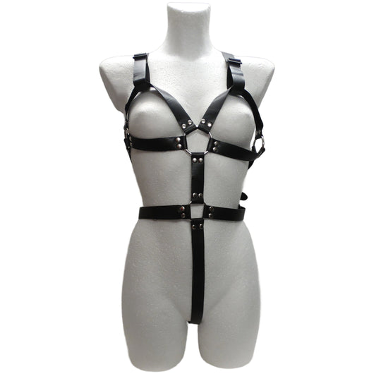 Leder Damen Body Bondage mit Handfesseln