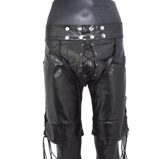 Herren Ledershorts mit Schnürung und Nieten, größenverstellbar Material: 100 % KunstlederNormaler Preis €30,95 -