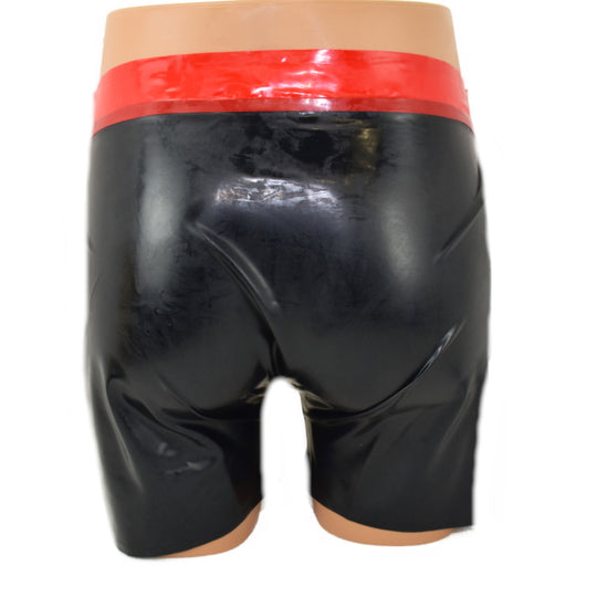Latex Shorts - mit rotem Bund und Reißverschluss