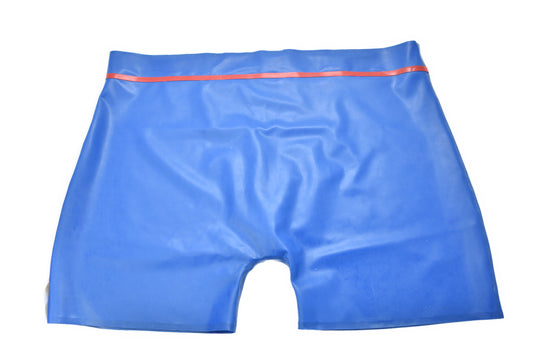 Shorts mit rotem Bund. Latex handgemacht, geklebt Material: 100 % Latex Wahlweise auch in diesen Farben lieferbar. Voll-farben Schwarz Blau Fleisch Orange Violett Rot Weiß Gelb Transparent Schwarz Blau Braun Silber Oliv Grün Violet...Normaler Preis Ab €49,95 -