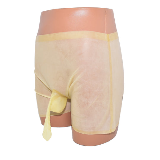 Shorts mit Riffelkondom und Hodensack. Transparent Material: 100 % Latex Wahlweise auch in diesen Farben lieferbar. Voll-farben Schwarz Blau Fleisch Orange Violett Rot Weiß Gelb Transparent Schwarz Blau Braun Silber Oliv Grün Violet Metallic Blaugrau...Normaler Preis €65,95 -