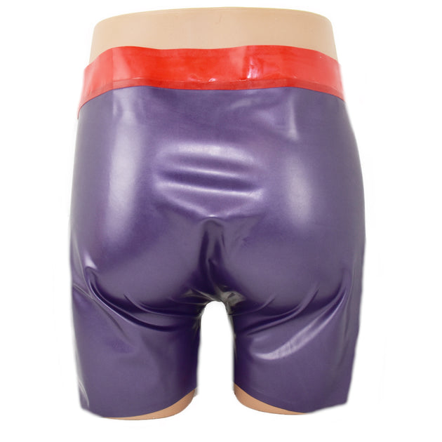 Latex Shorts - mit rotem Bund und Reißverschluss