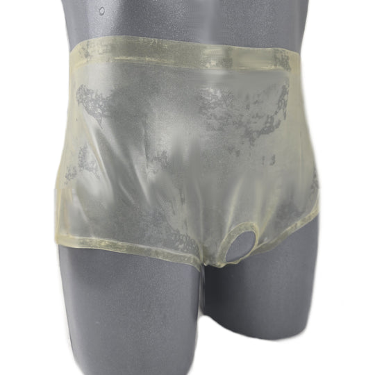 Latex Slip mit Penisöffnung, transparent. Handgemacht. Material: 100 % Latex Wahlweise auch in diesen Farben lieferbar. Voll-farben Schwarz Blau Fleisch Orange Violett Rot Weiß Gelb Transparent Schwarz Blau Braun Silber Oliv Grün Violet Metallic Blaugrau...Normaler Preis €49,95 -