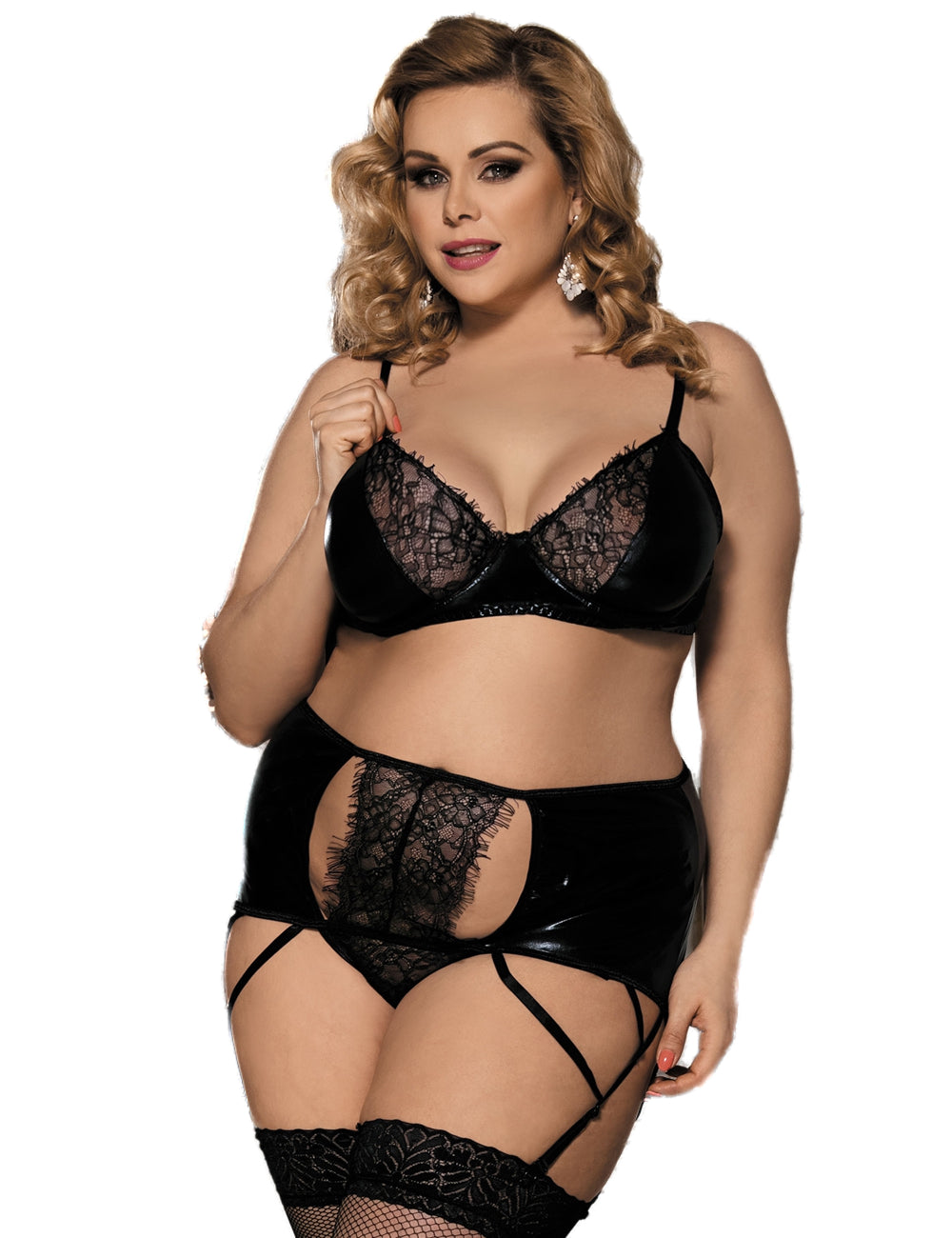 Damenset Strumpfband und BH aus Vinyl und