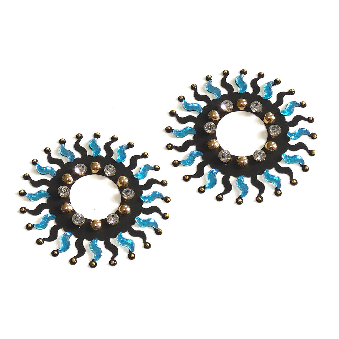 Nippelcover Aufkleber Flammen Sonne mit Strasssteinen,