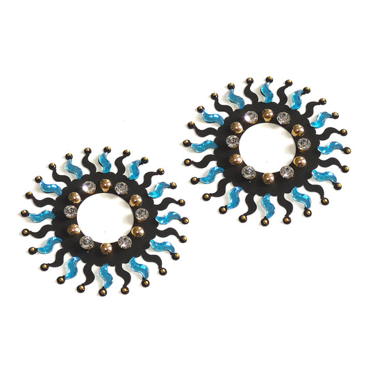 Nippelcover Aufkleber Flammen Sonne mit Strasssteinen, Farbe blau-schwarz Material: KunststoffNormaler Preis €8,45 -