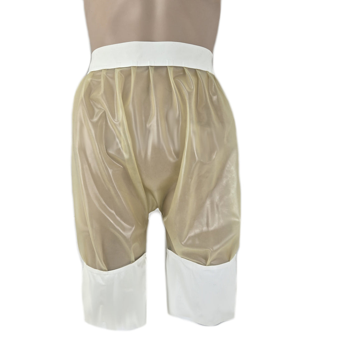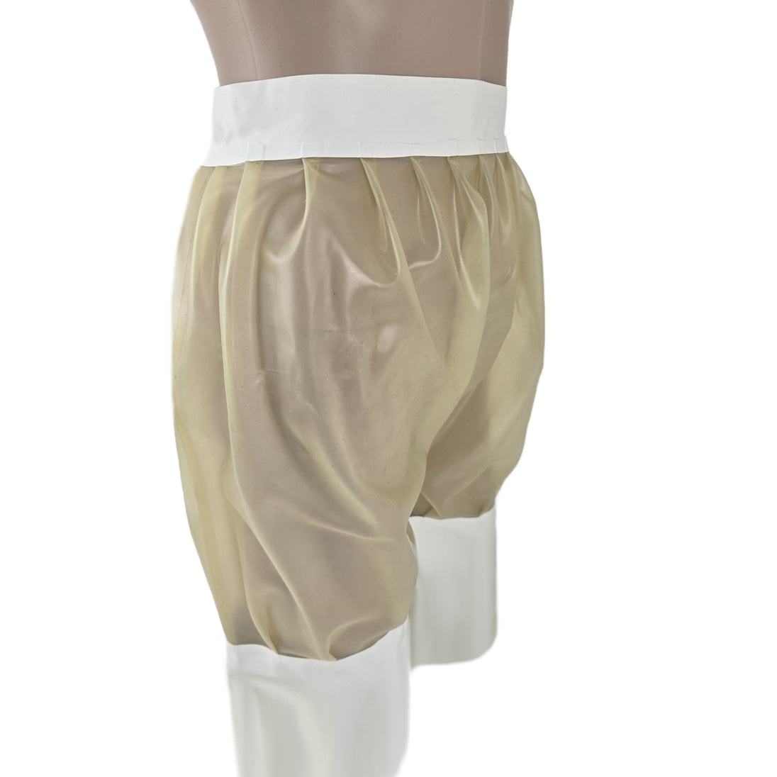 Latex Pluder-Hose mit extra breitem weißen Bund an Hüfte und Beinen.