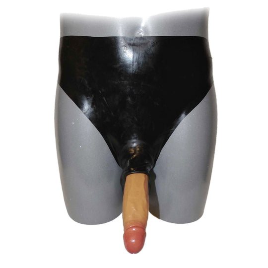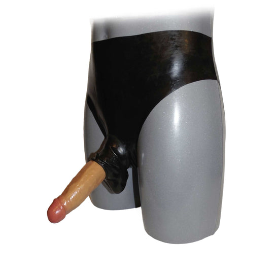 Latex Slip mit Penisschaft ca. 4 cm, und Hodensack Latex getaucht. 0,3 mm Latexstärke Material: 100 % LatexNormaler Preis €27,95