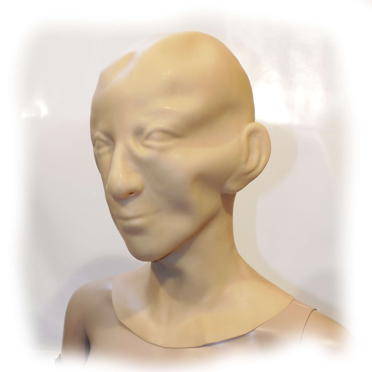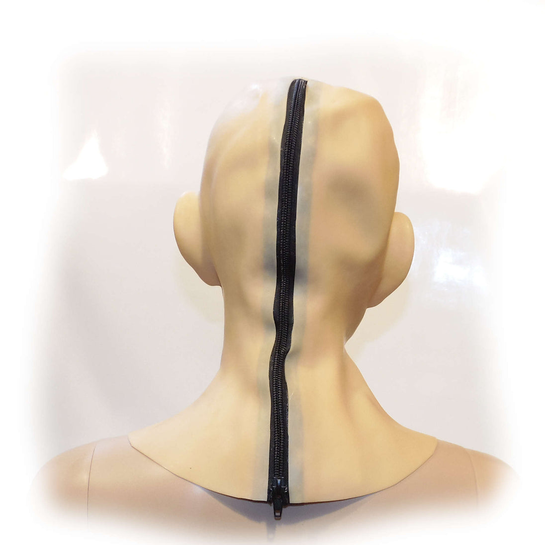 Latex Maske, Augen und Mund geschlossen, nur Nasenlöcher zum atmen.