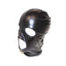 Schwarze synthetische Maske mit offenen Nase, Mund und Augen. Hinten Reißverschluss