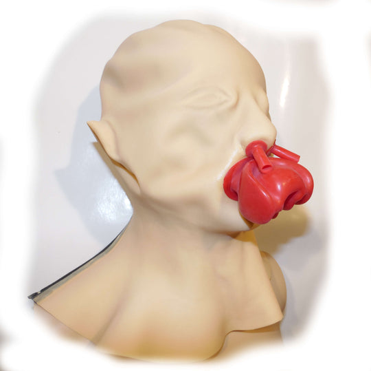 Latex Maske mit Mundstück und Nasenröhrchen L-XL