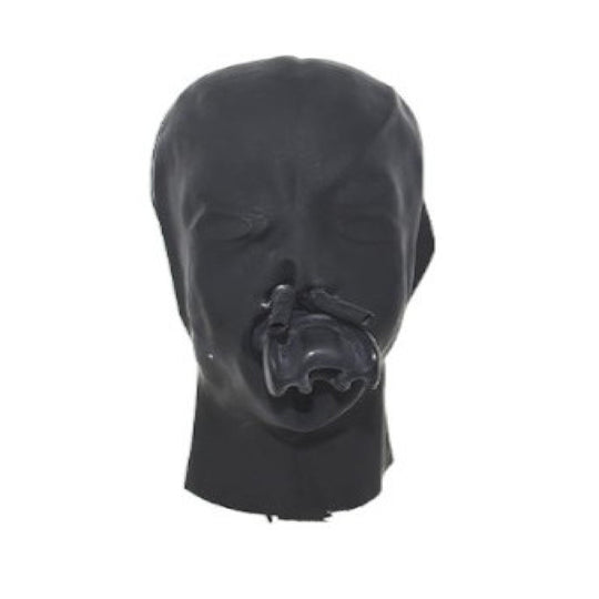 Latex Maske mit Mundstück und Nasenröhrchen schwarz