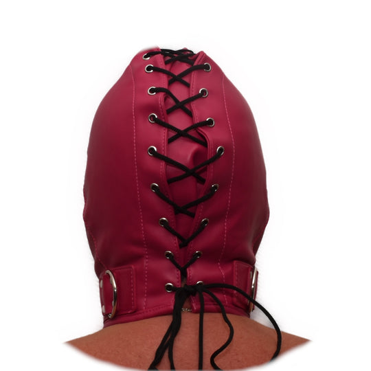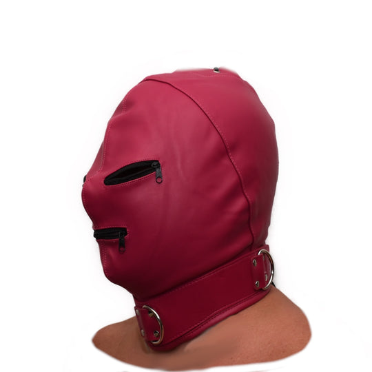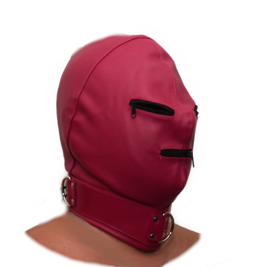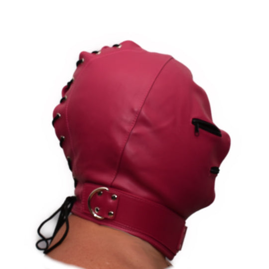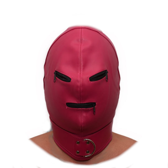 Fetischmaske mit 3 Reißverschlüsse (für Augen und Mund) zur Sinnesabschirmung. Auf der Rückseite Schnürung Farbe : pink Material: 100 % KunstlederNormaler Preis €27,95