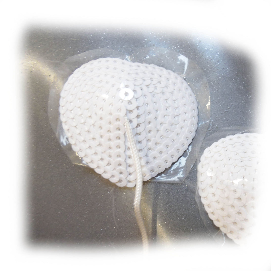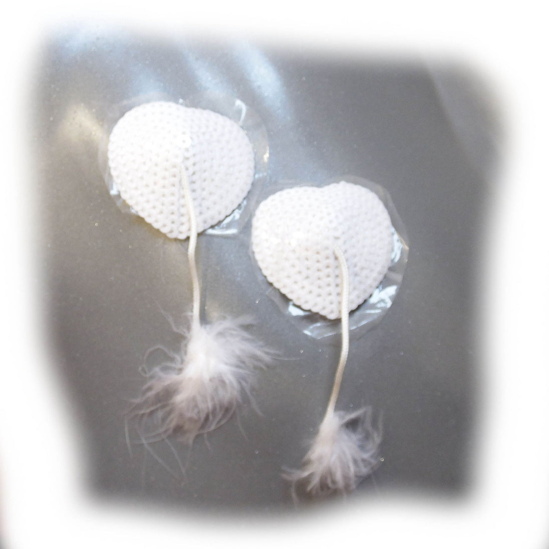 Nippel Cover Herz mit Pailletten und Bommel, weiss