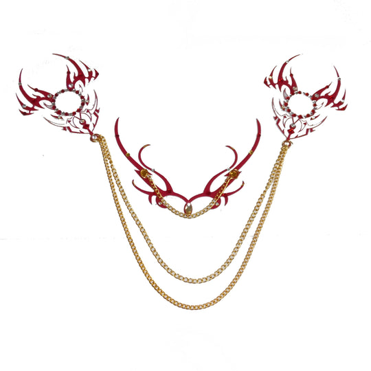 Nippelcover Aufkleber 3-er Set Brust und Schambein mit Strasssteinen und Ketten, Farbe rot Material: KunststoffNormaler Preis €9,45