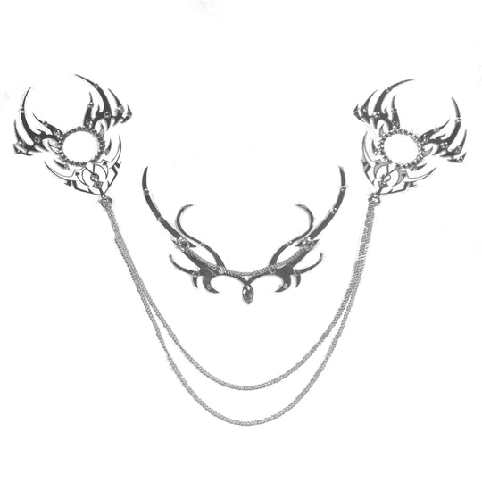 Nippelcover Aufkleber 3-er Set Brust und Schambein mit Strasssteinen und Ketten, Farbe silber Material: KunststoffNormaler Preis €9,45 -