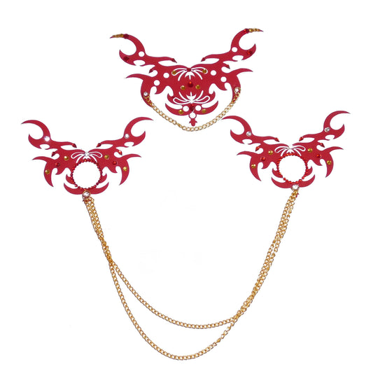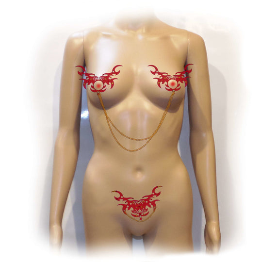 Nippelcover Aufkleber 3-er Set Brust und Schambein mit Strasssteinen und Ketten, Farbe rot Material: KunststoffNormaler Preis €9,45 -