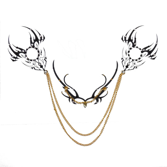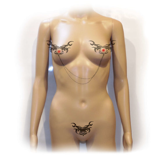 Nippelcover Aufkleber 3-er Set Brust und Schambein mit Strasssteinen und Ketten, Farbe schwarz Material: KunststoffNormaler Preis €9,45 -
