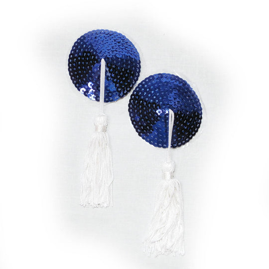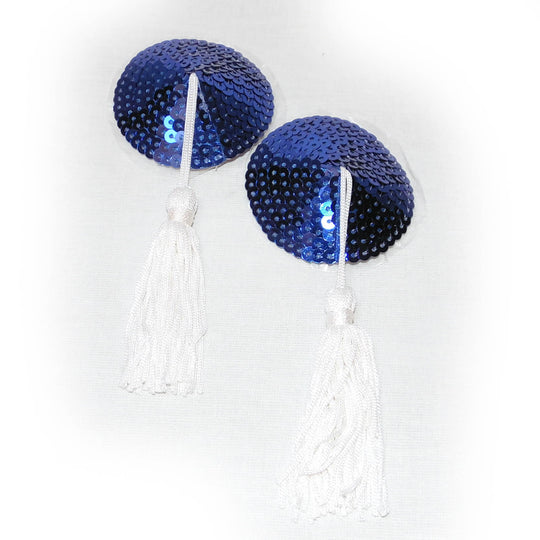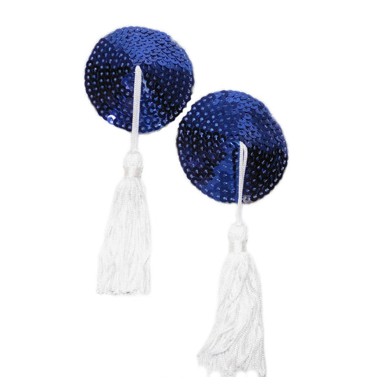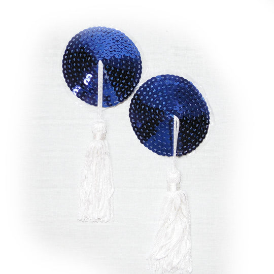 Nippelcover Rund mit blauen Pailletten und Bommel