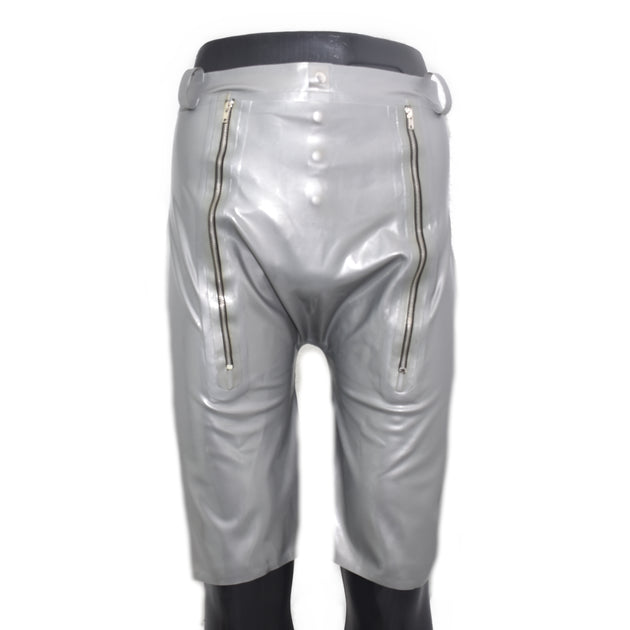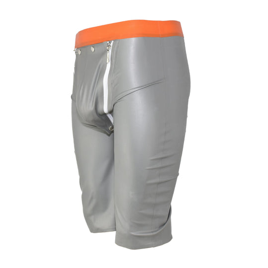 Latex shorts knee-length with double zipper/inner bag
