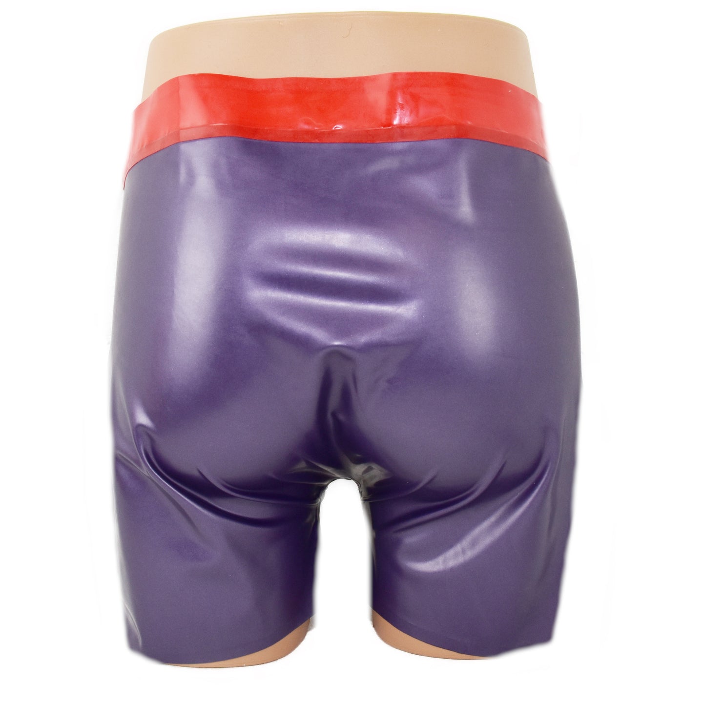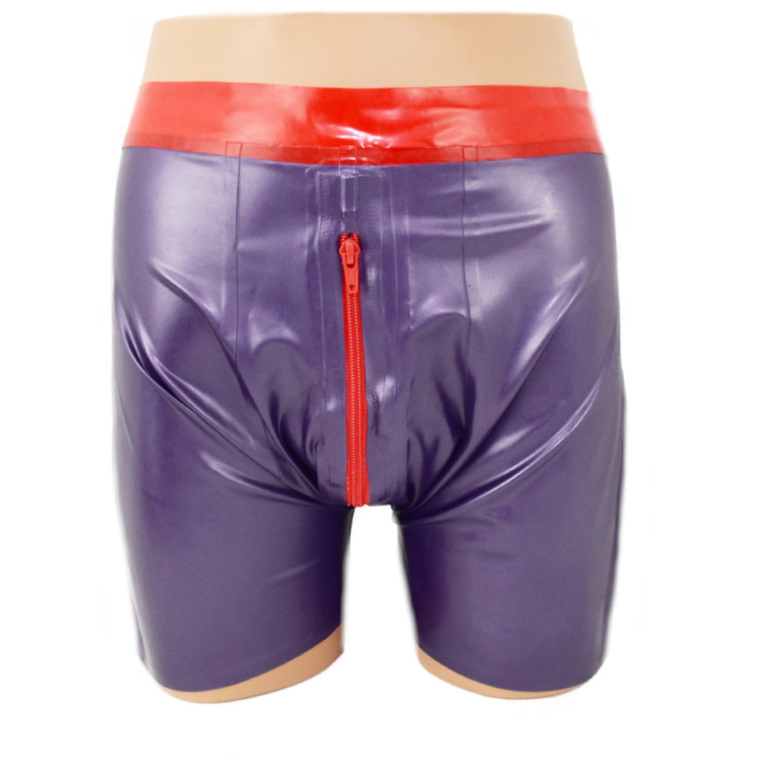 Latex shorts - with red waistband and zipper