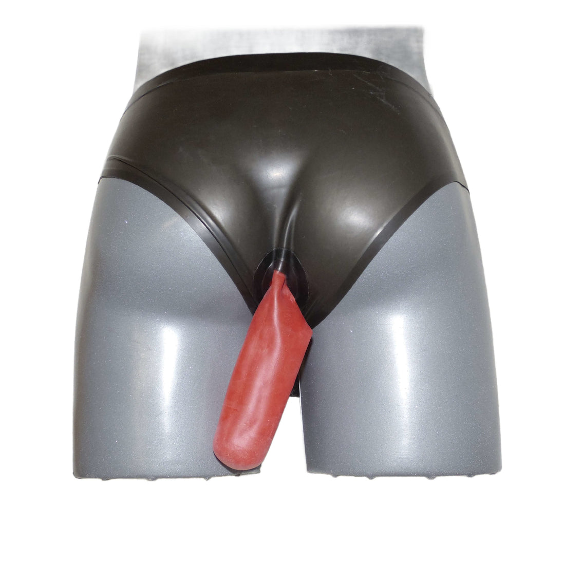 Latex briefs with zipper and anal condom