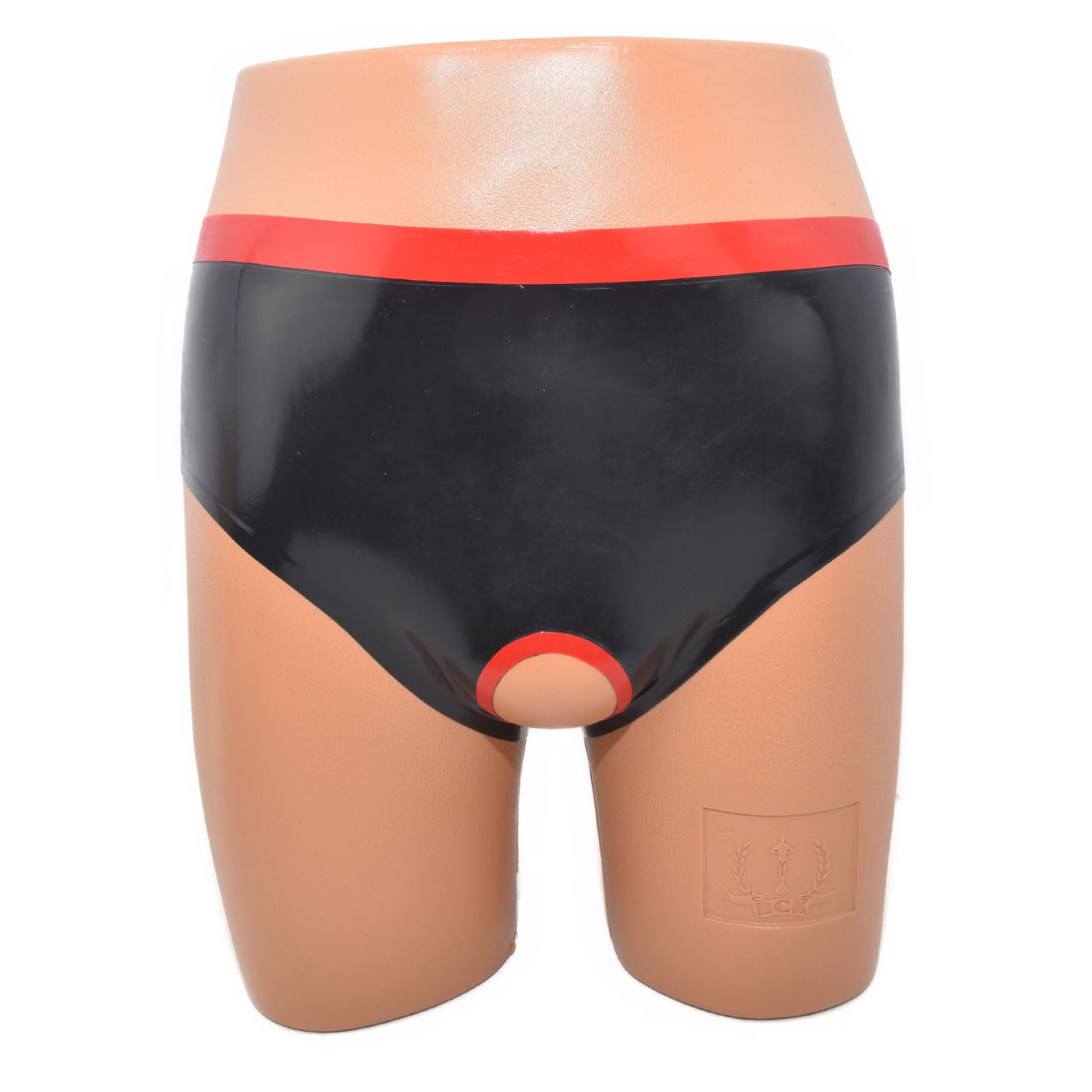 Latex Slip mit Frontöffnung und Analplug (ca. 15 cm lang)